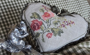 Kit includes 36ct linen, floss, backing fabric, trim, embellishments and finishing instructions