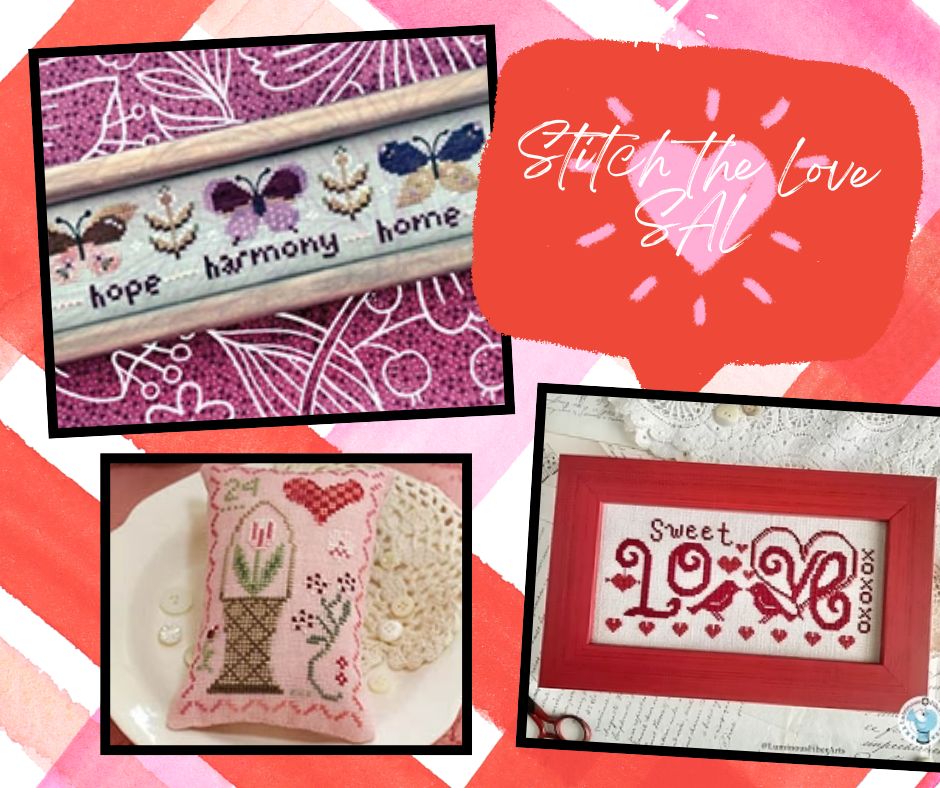 Choose one of these three designs to participate in our Stitch the Love SAL, February 1-28, 2026. You may choose chart only or the full kit for the design of your choice (or 2 or all 3!). Order by January 16. Estimated pickup/ship date is January 23.
