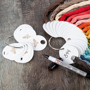 These cute Farm Fresh Egg Threadkeeper Floss Drops are made with durable plastic and have two holes for floss and floss rings. These floss drops are reusable and easy to label with floss number stickers. Floss drops measure 1.75" x 2.25" with holes - 0.375" and 0.5" diameters. Includes 20 floss drops.