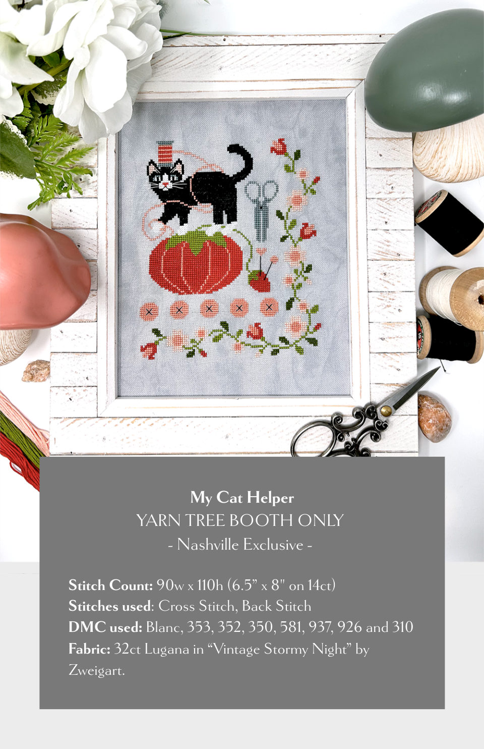 DMC: Blanc, 353, 352, 350, 581, 937, 926, 310