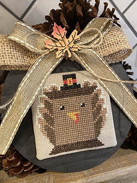 DMC: 310, 347, 729, 840, 3863, 3781, 3031, Ecru